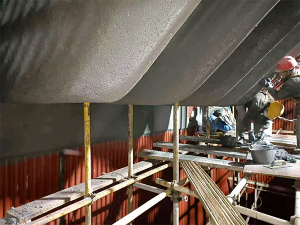 廣西CFB循環流化床鍋爐耐磨可塑料施工現場